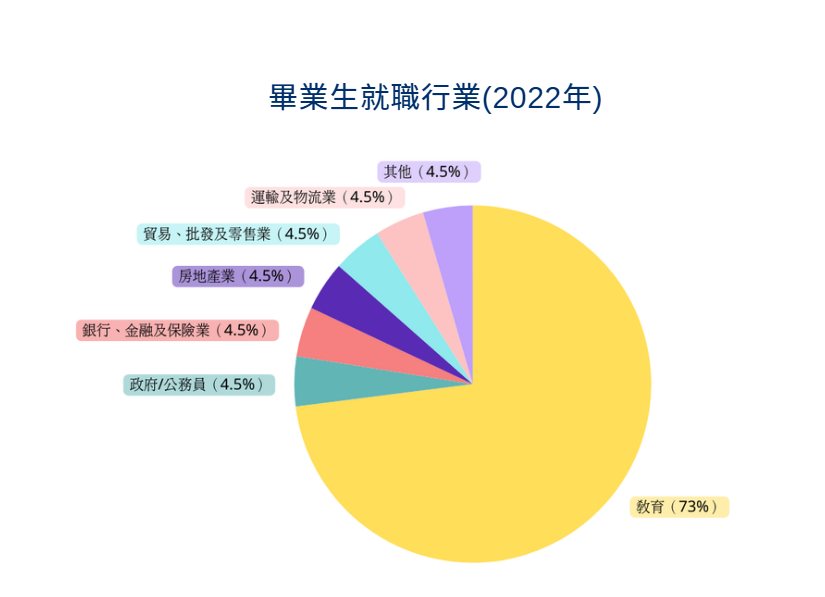 畢業生出路 升學及專業進修 當代社會對語文人才需求甚殷。語文教育、編輯及出版、商業行政及管理、媒體及公共關係、文化創意產業等界別,特別需要扎實的中文專業知識、靈活和全面的中文寫作及口語能力的人才。本課程為學生提供了扎實的學術訓練,學生完成本課程後,亦可於本地或海外攻讀研究生課程繼續深造。 升學及專業進修 跨學科就業優勢 畢業生就業數據 本系畢業生在就業及升學兩方向均表現優良。2022年度,畢業生主要從事語文教育、公共或教育行政、傳媒、廣告及營銷、公共關係及客戶服務等界別的工作,部份亦獲香港中文大學及香港大學研究院取錄,攻讀碩士課程。